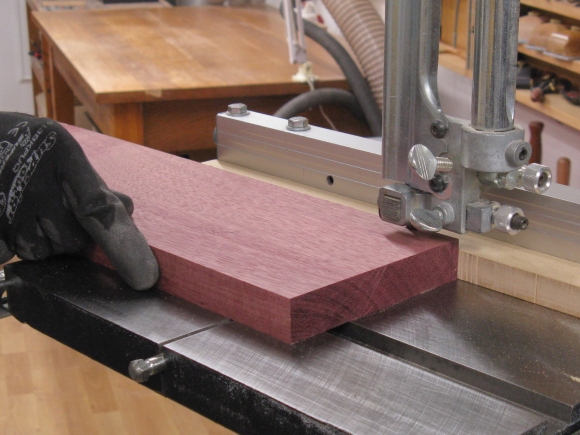 I didn't have a lot of purpleheart lying around but this one plank (around 5.5" x 20" x 1") looked like it would be more than enough for the rack.