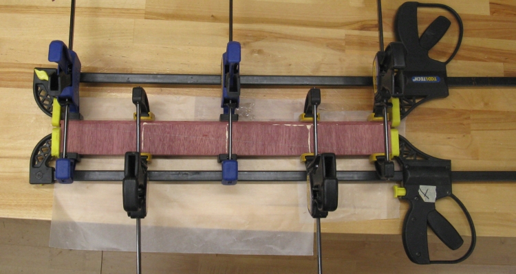 That was everything needed for the blank so the two back pieces and the four body pieces were glued together and clamped as shown here.