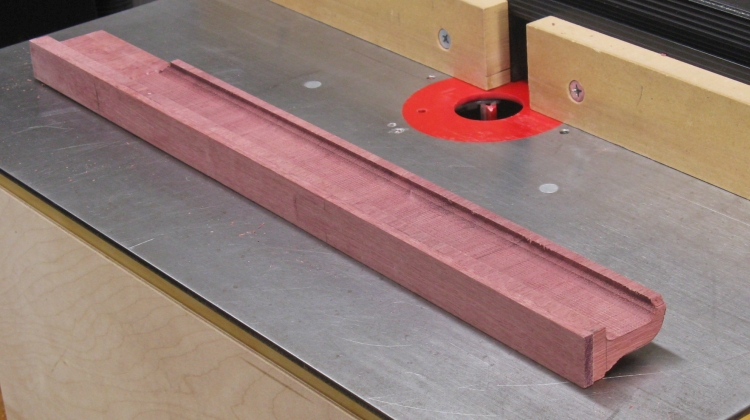 I started with the 3/8" bull-nose bit seen here and then switched to a roundover bit for the end, followed by a flat-topped bit to clean up corner.