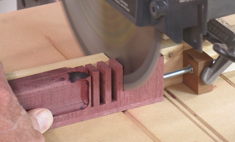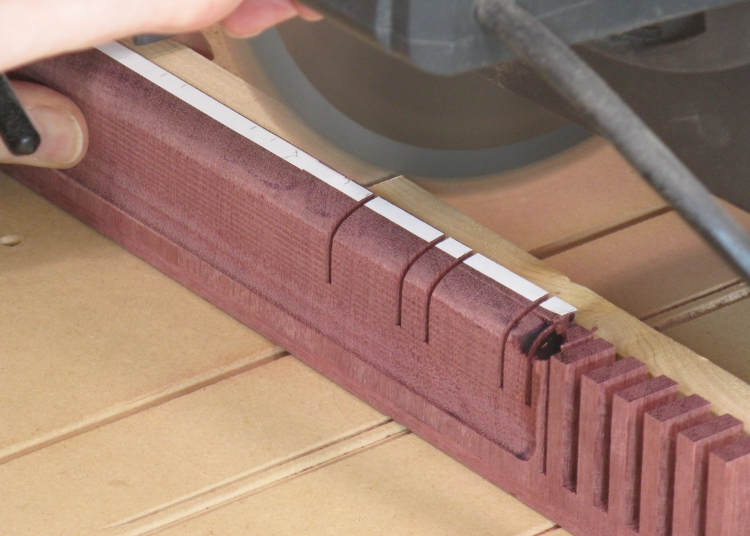 The position of these cuts was less critical so I just marked the locations (using some white tape for better contrast) and positioned the wood manually for each cut.