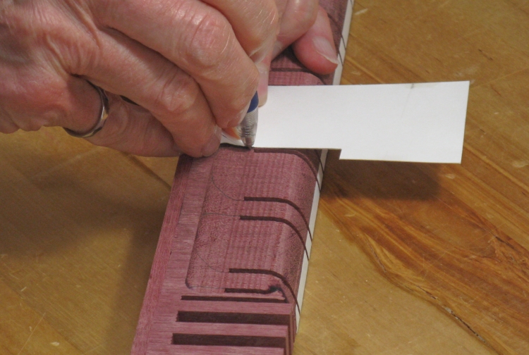 To establish the shape of the hook bases, I cut a pattern from a business card and traced on a curve for each cut.