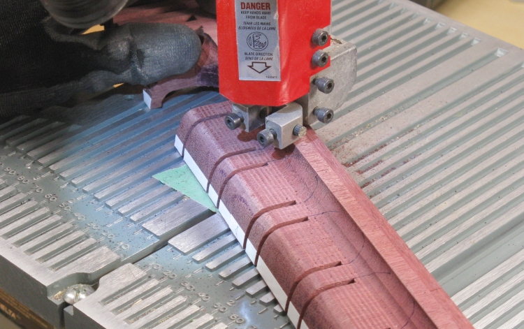 The back pieces were planed to a consistent thickness (of about 3/16") and then the four pieces for the main body of the blank were cut free on the radial arm saw.