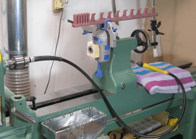 I also attached a rotary shaft (the yellow-handled bit) that was driven by the lathe to use for the rounding.