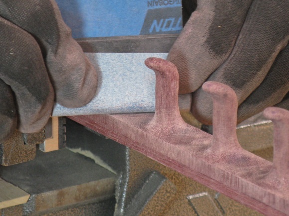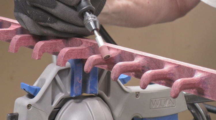 I used a couple different sizes of sanding drums to round off inside and outside corners of the hooks with the smaller one seen in this shot.