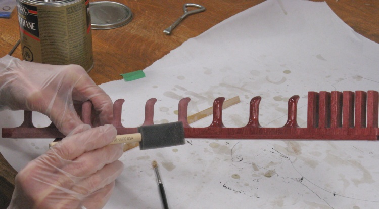 I used my standard MinWax Fast-Dry polyurethane varnish as a finish. This shot shows the first coat going on.