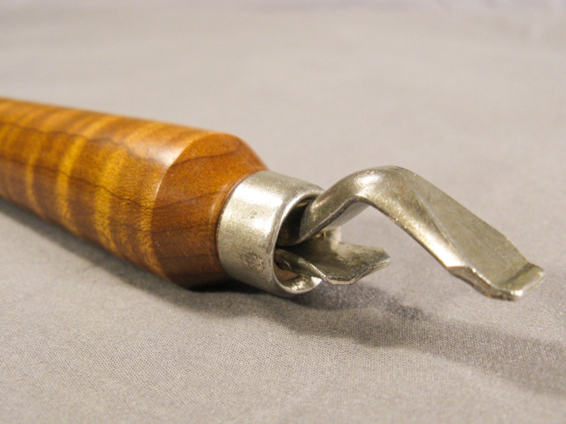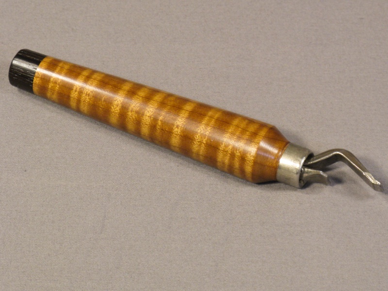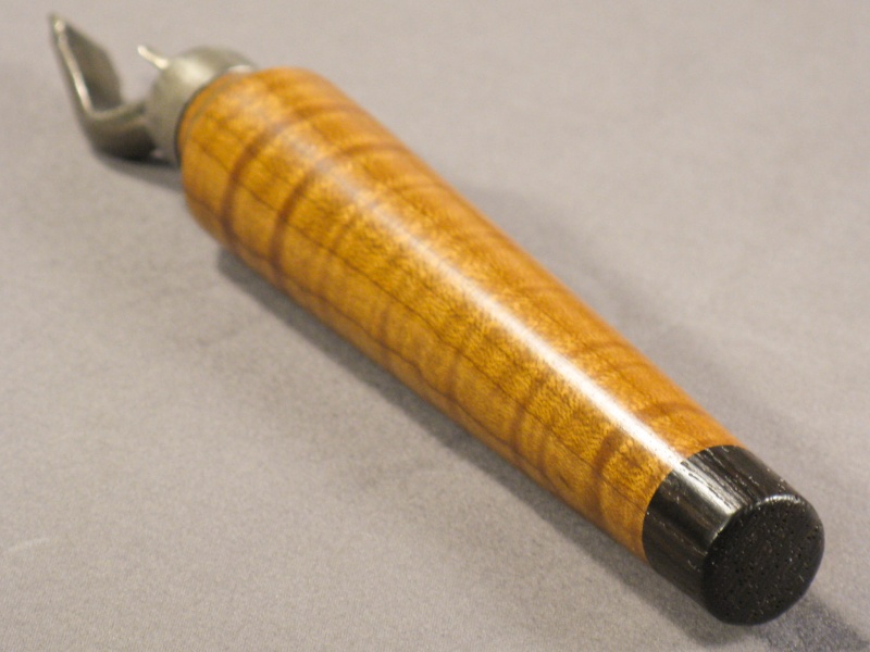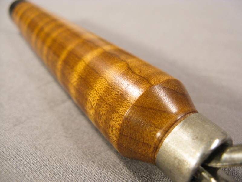 I wanted to use Roasted Curly Maple but my last remaining scrap wasn't quite long enough so I extended it with a bit of dark Wenge on the end. I cleaned up the metalwork, stuck the two woods together and turned the new handle on the lathe.