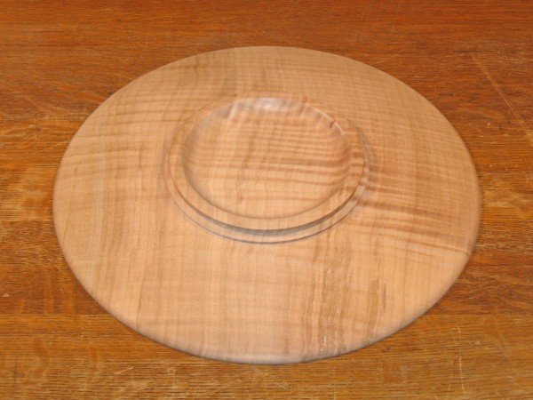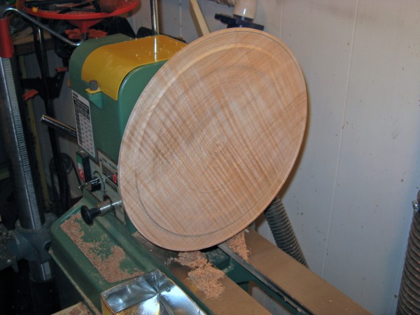 When complete, the thickness of the wood varies from around 0.3" near the center to 0.18" at the edge.