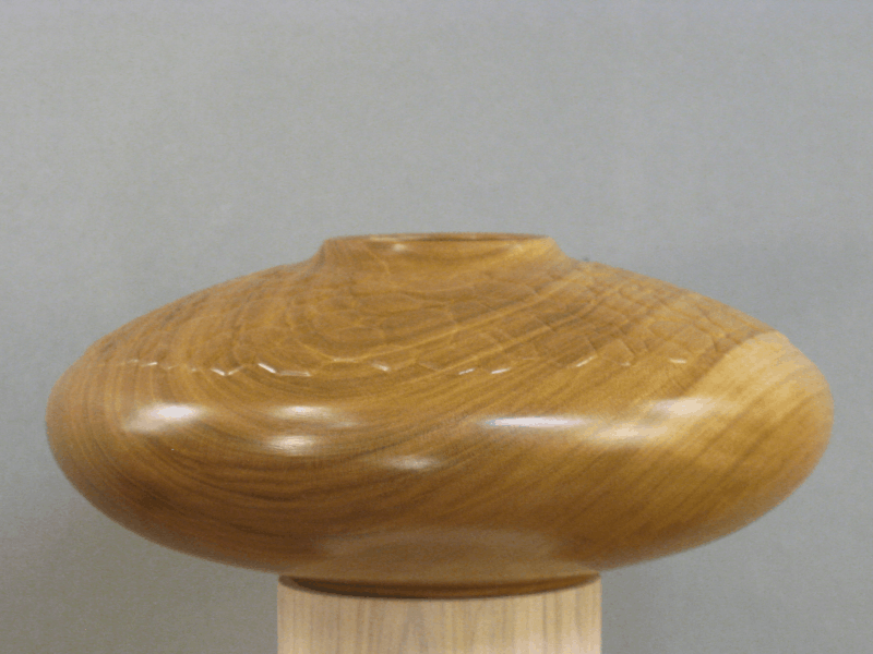 I had previously made a turning with a similar profile in the early days of my lathe (circa 2010) but a moment's inattention when I was almost done resulted in the hollowing tool rattling around and causing some unrecoverable damage. I kept the wounded piece around thinking I may someday may make something out of it (probably not) but anyway I still liked the shape and finally got around to making this piece as a sort of penance for that goof.