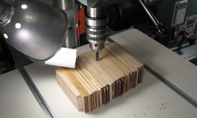 The depth stop on the drill press was used at the "start" end rather than the normal "stop" end. The setting is used to hold the bit down a specific depth below the surface of the wood, and then the wood is moved manually under the bit to give a consistent surface.