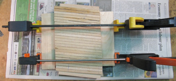 And voilà - a perfectly glued blank if you don't care about making them even or having your nice alignment lines line up correctly. Strange things happen when I'm in a rush to clamp...