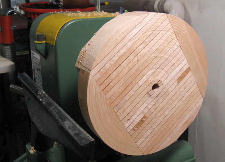 The blank has had the sides trimmed in this shot and is ready for the other pieces to be added for turning.