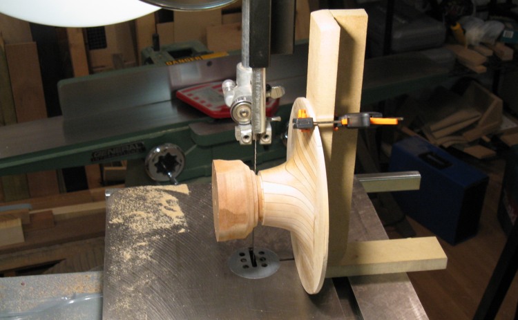 Then the shape was rather rudely cut out on the bandsaw (due to a thick blade that wasn't happy about cutting curved lines).