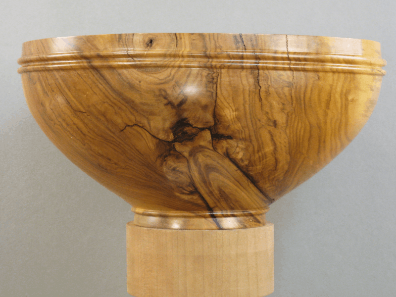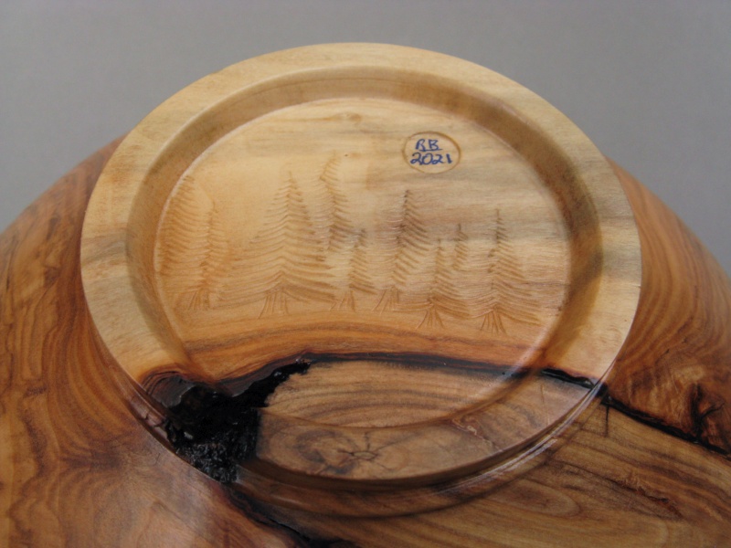made - specifically a deep bowl that used most of the wood. The turning was pretty straightforward except the bowl kept changing shape slightly - probably due to the wood not being completely dry - so I needed to keep re-rounding it. Eventually I gave up on that and just worked with it in whatever (slightly) wonky shape it wanted to be. The log also had an embedded branch that was a bit loose so I epoxied that in place to solidify the wall.