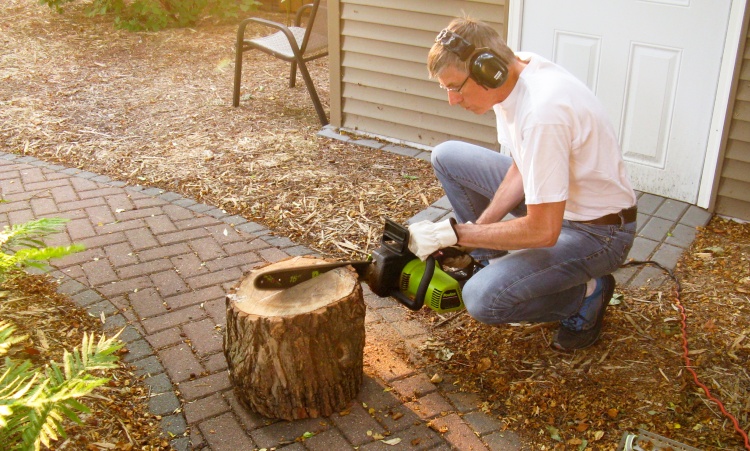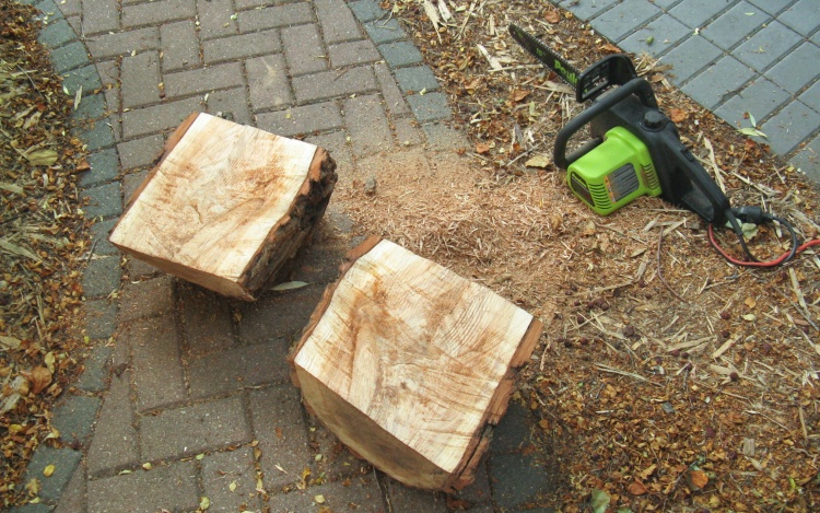 The log was too large to run through my bandsaw so I turned to my little-used electric chainsaw. It took longer to dig it out of the garage and get it ready to go than to actually cut the log.