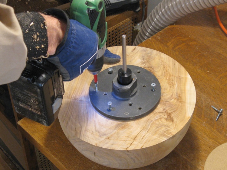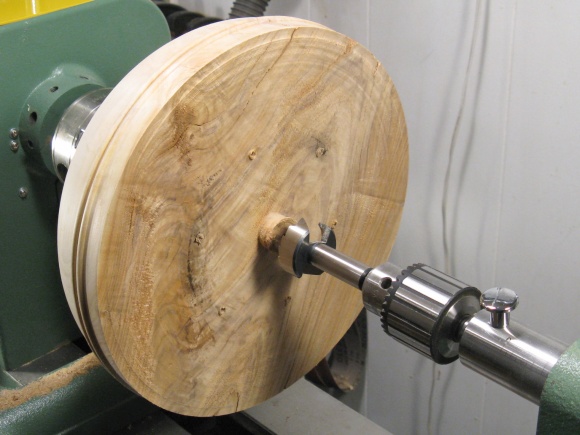 And then when flatness looked good, I pulled the blank off the lathe and installed a faceplate.