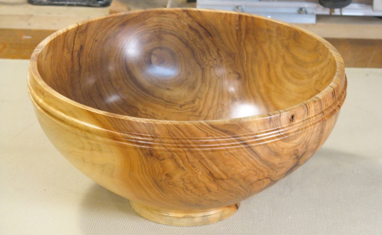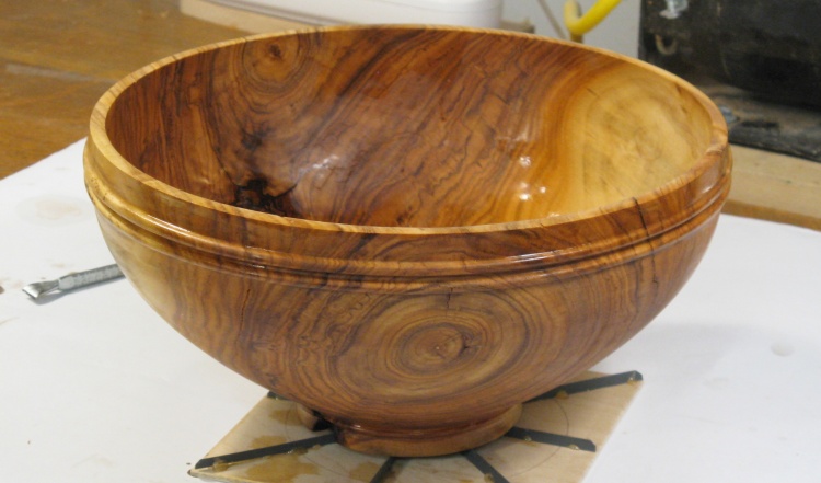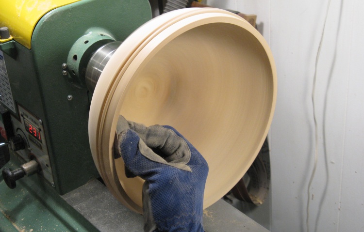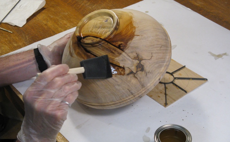 The bowl would receive the standard three coats of polyurethane varnish with this photo showing the start of the process.
