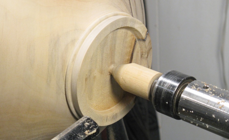 Inside the foot is a round protrusion (bottom tennon) that I'll use to hold the blank when I flip it back around to do the hollowing.