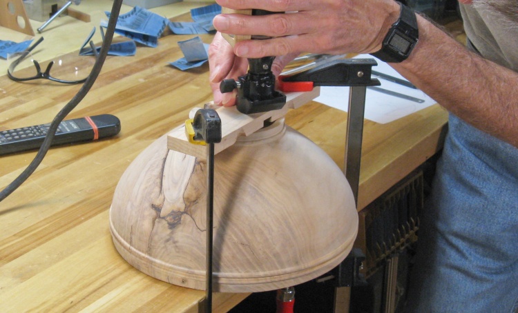 I also glued a short piece of dowel onto the bottom to provide a bit more clearance for the turning tools.