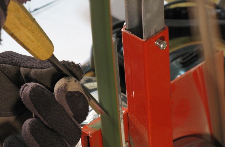 Sharpening chisel on leather belt