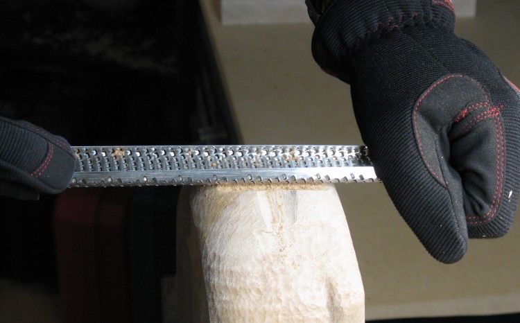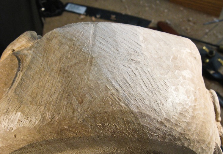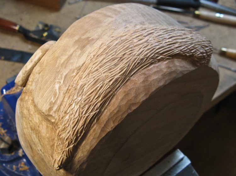 The only thing left was to give the rest of the body the pseudo-fur texture, created by overlapping shallow cuts with largish curved chisel.