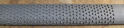 This is the surface left by the rasp - a series of small shallow gouges. This is actually a pretty good finish for this type of tool - there are no deep gouges as might occur with the "big spikey file" style of wood rasp.