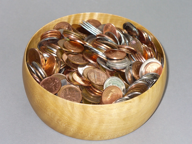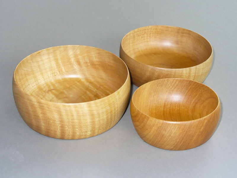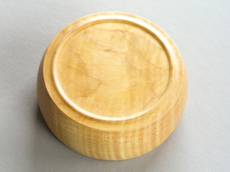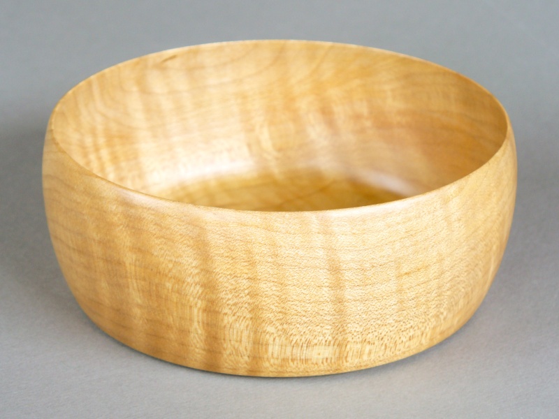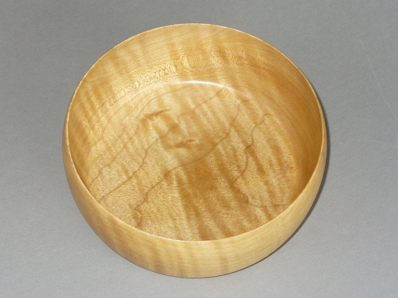 turned up to 5 1/2" diameter. This bowl was made about as large as it could be using the blocks. I liked the proportions of the last bowl I had made, so this one was similar except in size. The two Figured Maple bowls have some nice "chatoyance" brought out by the varnish.