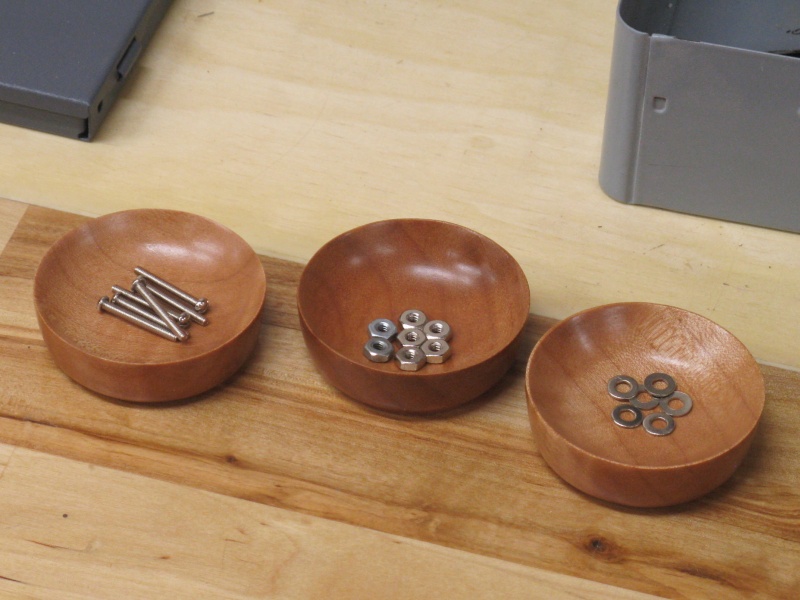Several months ago I was working on phone stands which used tiny cigar-box nails as hinges. I ended up just dumping the nails onto the work bench but I thought it would be nice to have some little containers to hold small parts, like maybe bowls? I can do bowls.