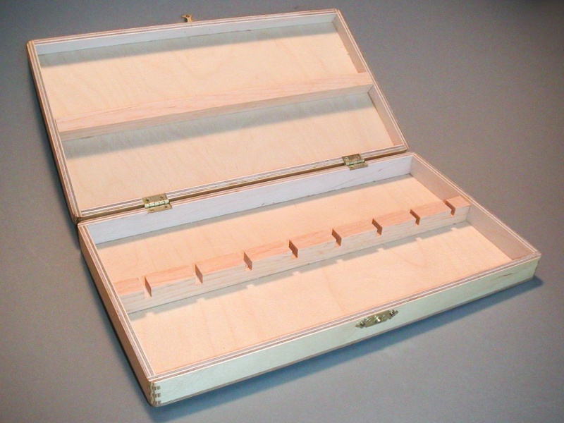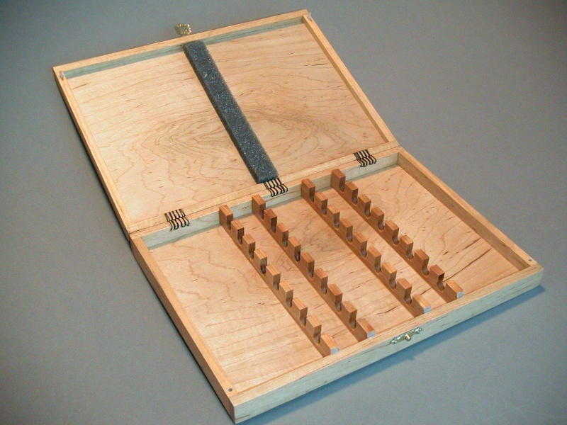 I made these boxes for various carving tools early in my carving "career". Later on, I ended up making a wall-mount tool chest that held most of the tools, so the boxes now mostly help hold down a shelf.