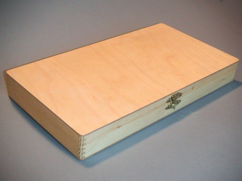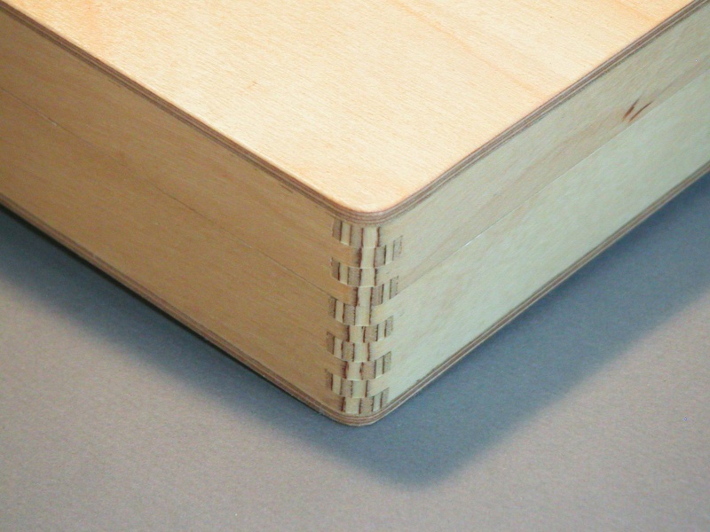The last box is a simple Baltic Birch plywood job. The only noteworthy feature are the box joints on the corner. They look interesting when they are rounded off, which reveals the contrasting wood plys.