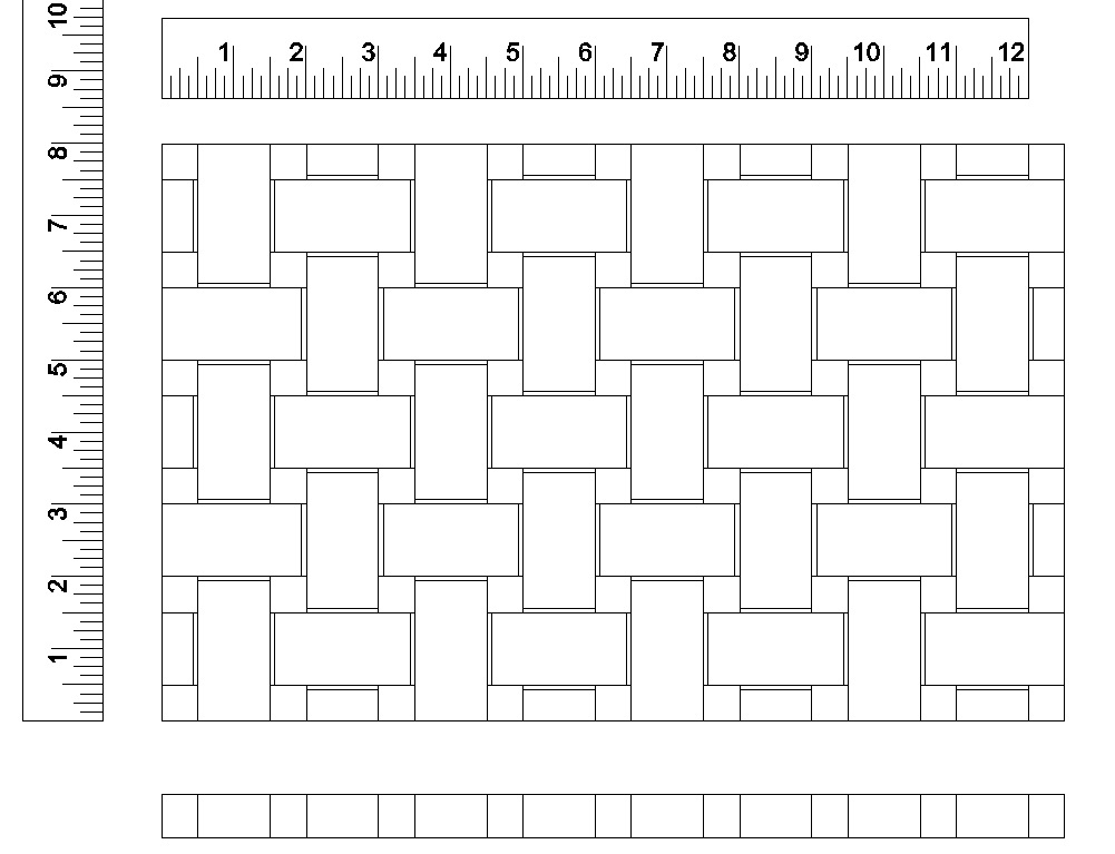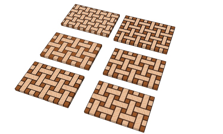 I played around a bit with proportions of the weave and the shadow size where the strips go "under" the crossing ones. I decided I preferred the tighter weave over the looser look and eventually ended up with the one in the upper-left corner.