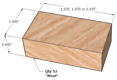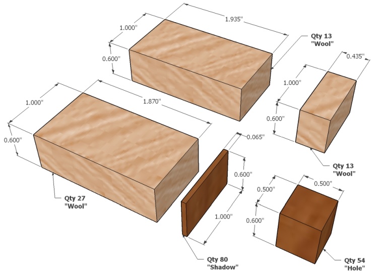 I intentionally made the shadow pieces about 1/16" wider than they needed to be so they would overlap the wool pieces. I needed them to be exactly flush with the wool piece sides and the only practical way to do that was to make them long and then sand them smooth.