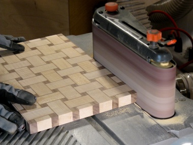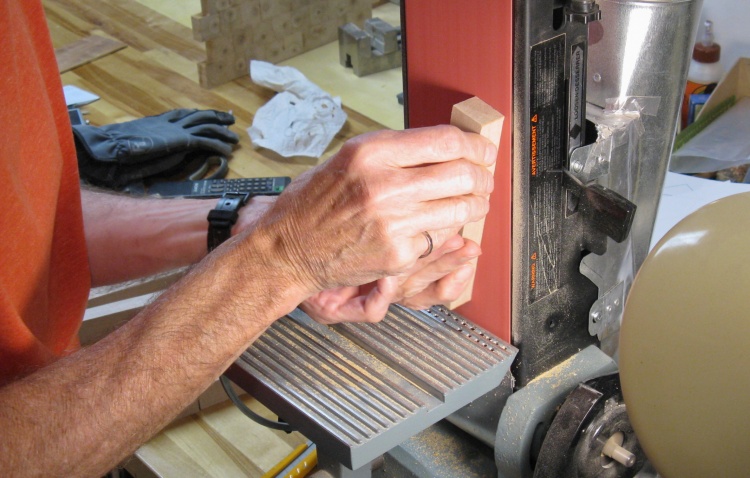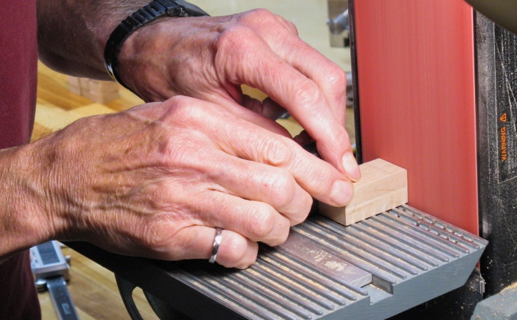 I sanded the faces on the belt sander to remove the saw marks. The thickness dimension wasn't particularly critical so I didn't need to be too careful with the exact amount sanded off.