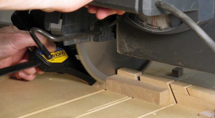 Then these blanks were cut to exactly 1/2", once again using the radial arm saw with a stop.