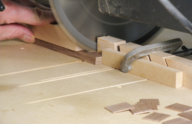 Chopping up a little pile of veneers