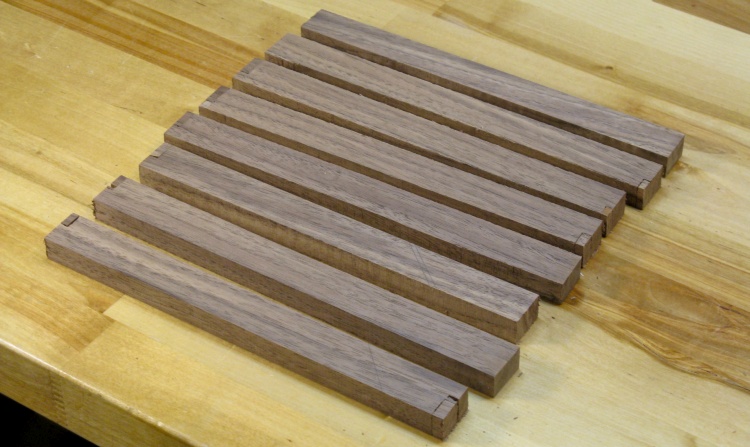 After planing to exactly 1/2" thick, I cut the single long piece into 8 easier-to-handle blanks of the proper thickness for the breadboard and sanded the cut edges smooth.