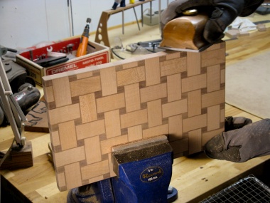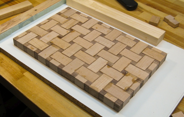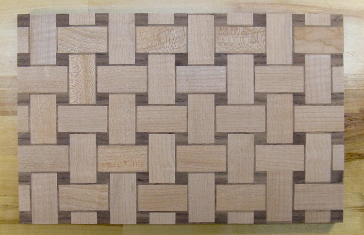 This made the between-weave parts pretty small - 1/2" square to be exact - which led to a board composed of a fairly large number of pieces, but they were not particularly tough to make so that was fine.
