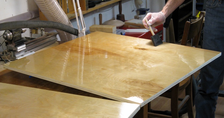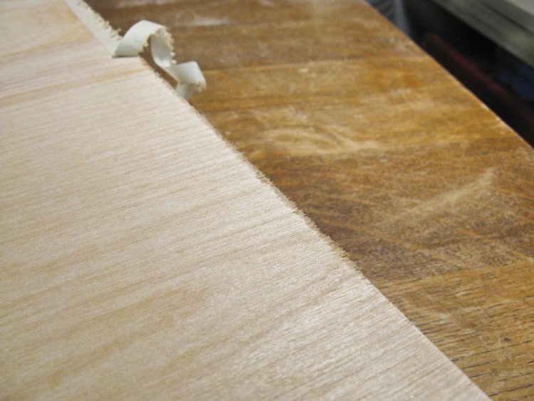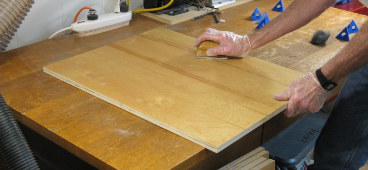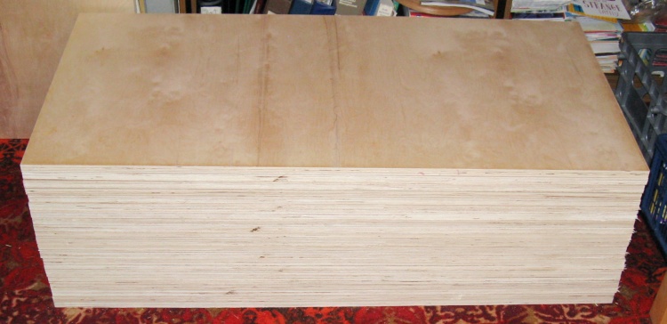 The plywood I used was birch with an 18mm thickness, an 11 ply construction and thin face veneers. In fact the veneer was only 0.008" thick - about the same as three sheets of paper. The danger of that thinness is that if the face needs to be sanded for any reason, you risk sanding right through it. Fortunately my design didn't require any sanding so it was no problem for me.