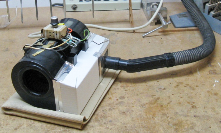 Workroom vent fan connected to central vac hose