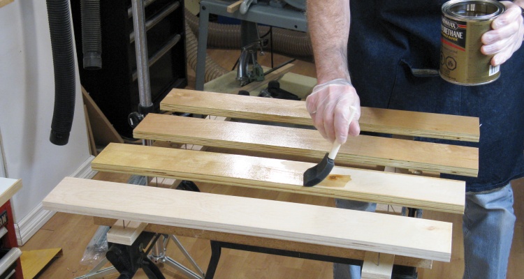 As alluded to previously, I decided to pre-finish the pieces prior to assembly. All the faces and any edge that was not going to be glued got two coats of varnish. Normally I would do three coats but I was able to put on more than normal since there was no danger of drips on the horizontal faces and I was careful to avoid putting too much on the vertical edges.