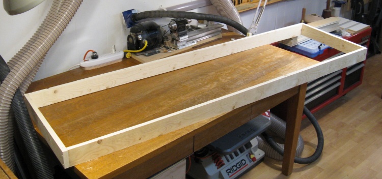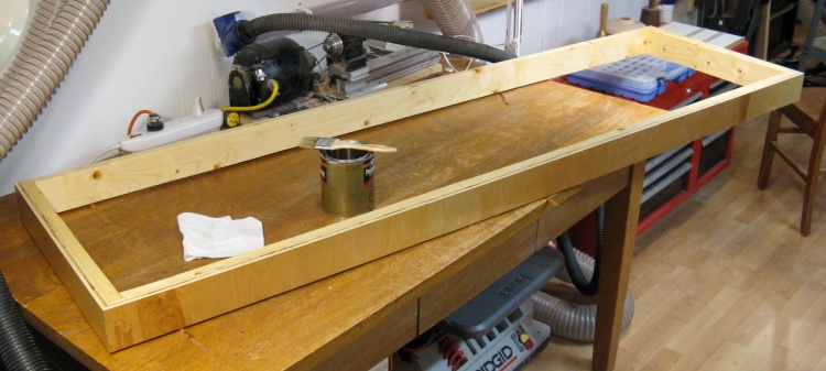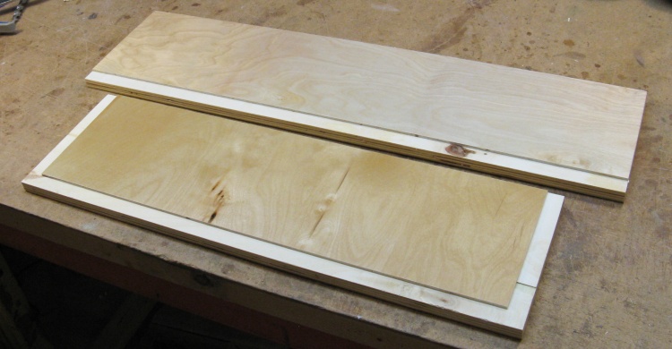 At this point the pieces have all been cut to size and varnished, but the four edge pieces need to be routed to get the recesses seen here.