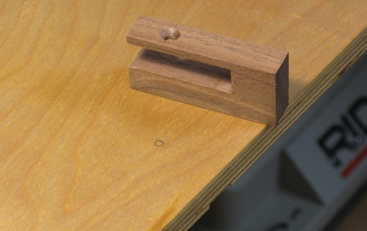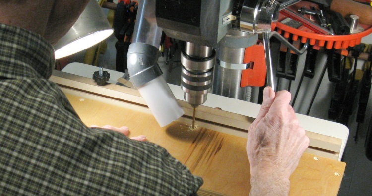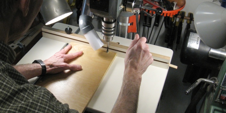 ...and then the clearance hole for the screw. The fence on the drill press table was used to get a consistent distance from the edge.