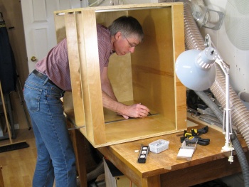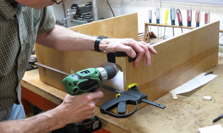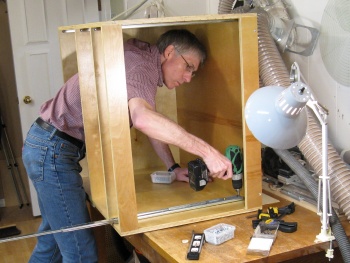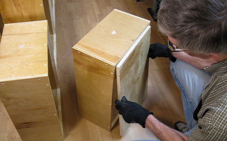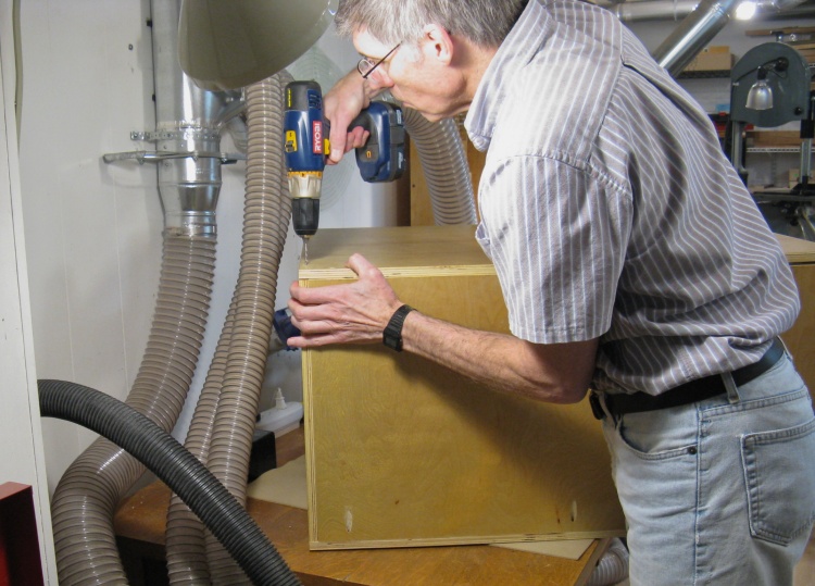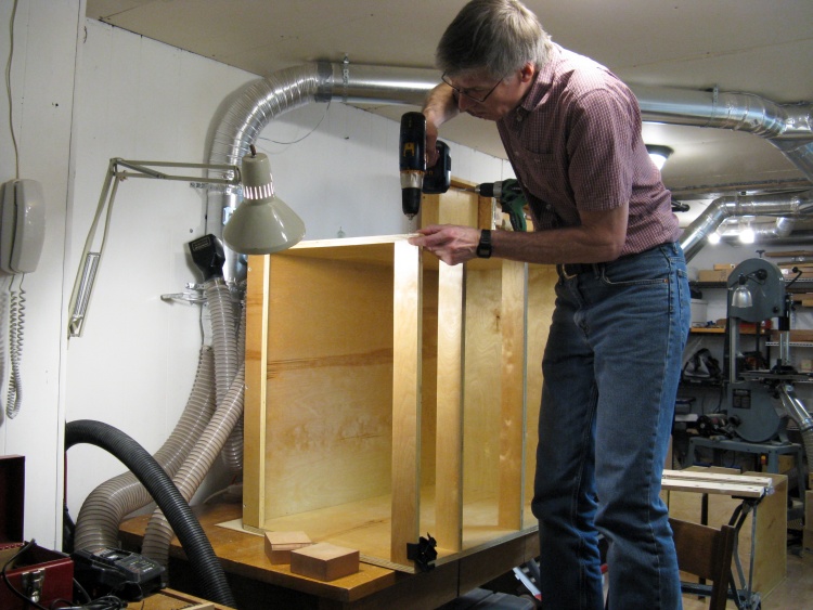 The first cabinet was dry assembled after pre-drilling for screws.