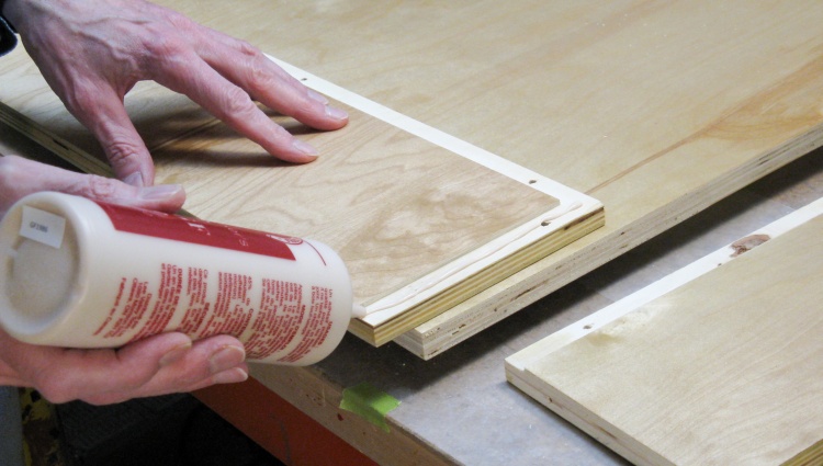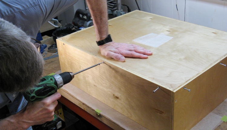 Then the plywood pieces were fit onto the frame and also glued in place with a few screws to hold them together while the glue dried.