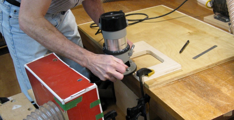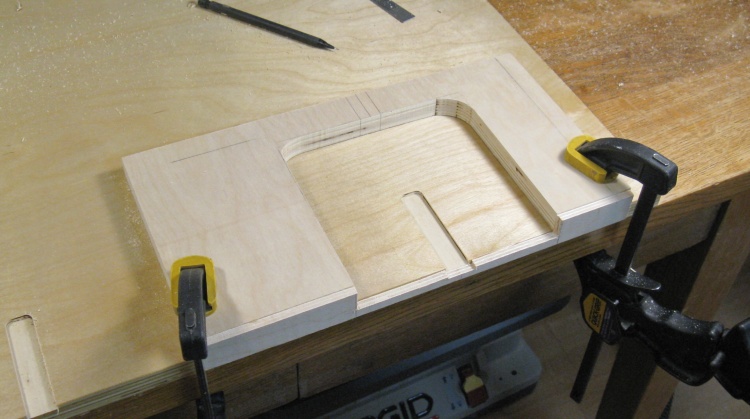 Instead, I used a hand-held router guided by a simple pattern cut from a scrap of plywood. I don't actually have a hand-held router of my own but I was able to borrow one from a woodworking buddy (thanks Gary!).