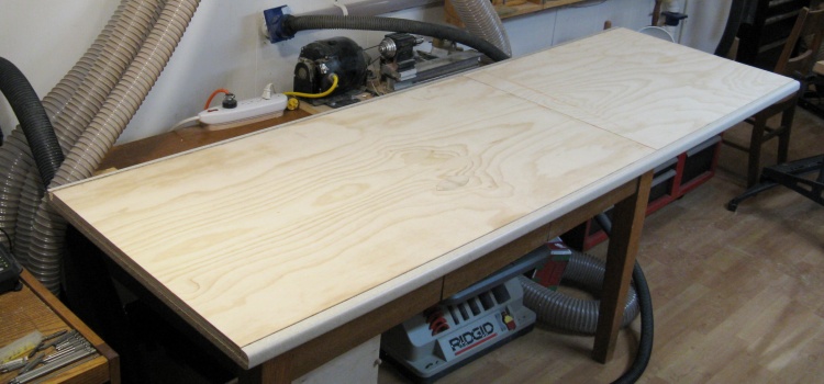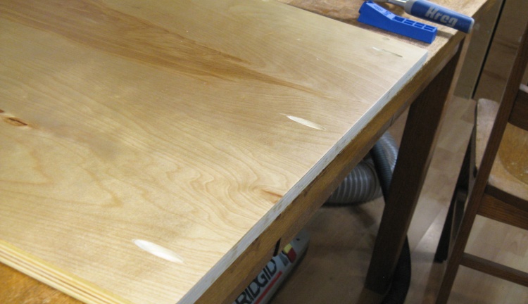 Underside of laminate top with plywood attached