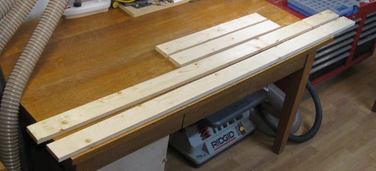 The cabinet will mount on a separate base so that it is supported about three inches off the floor. The base itself is a rectangular frame and this photo shows the four sides, just cut from 2x4s.