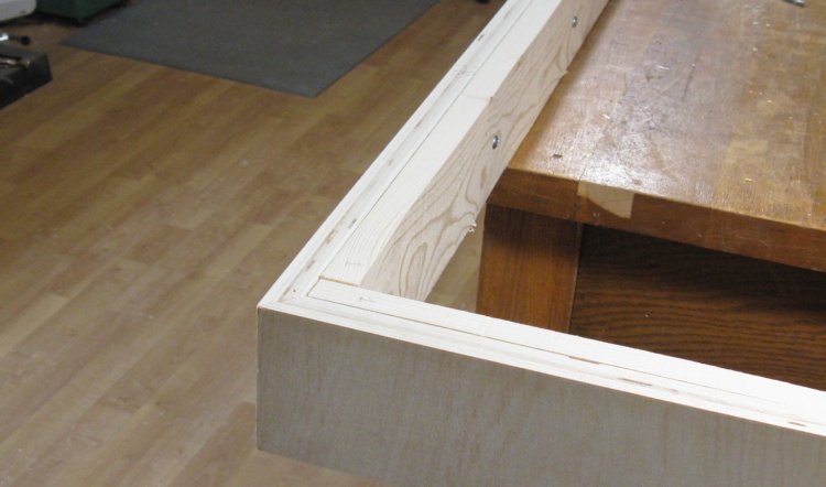 That seemed to work well since the top ended up being dead flat when it was installed. This is a shot of the underside after the plywood has been attached.