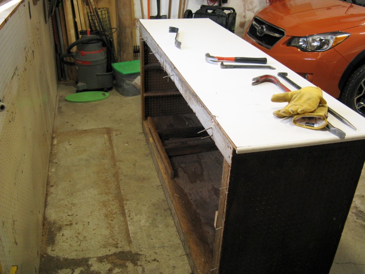 Step two was to pry it from the wall, but after about half an hour's frustrating work with a number of different pry bars I had managed to pry it only about 1/8". I gave up for the day.