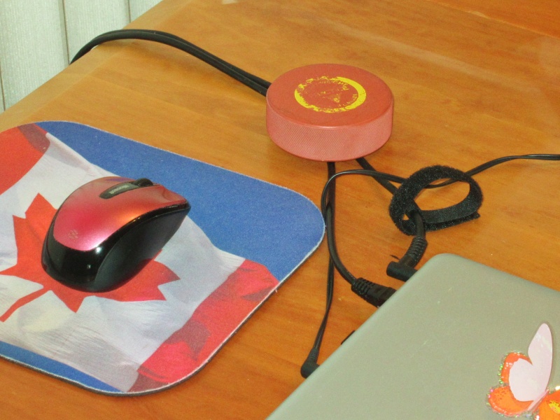 My spouse is right-handed but for reasons too esoteric for me to grasp, uses her computer mouse on the left side. Her computer is a laptop and the power and network cables also engage on the left side and tend to interfere with the mouse movement. Her solution was to restrain the cables with a heavy object, namely an orange