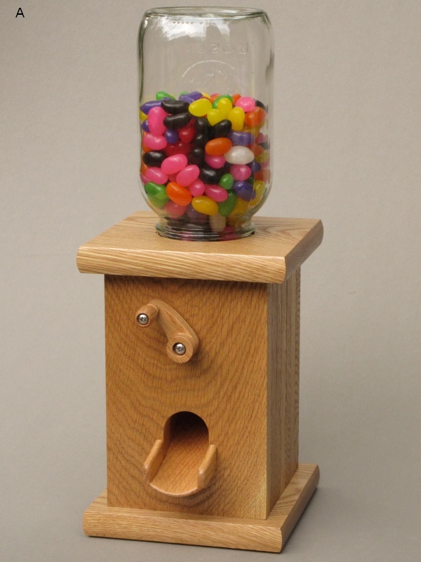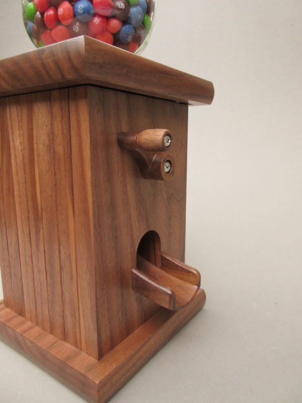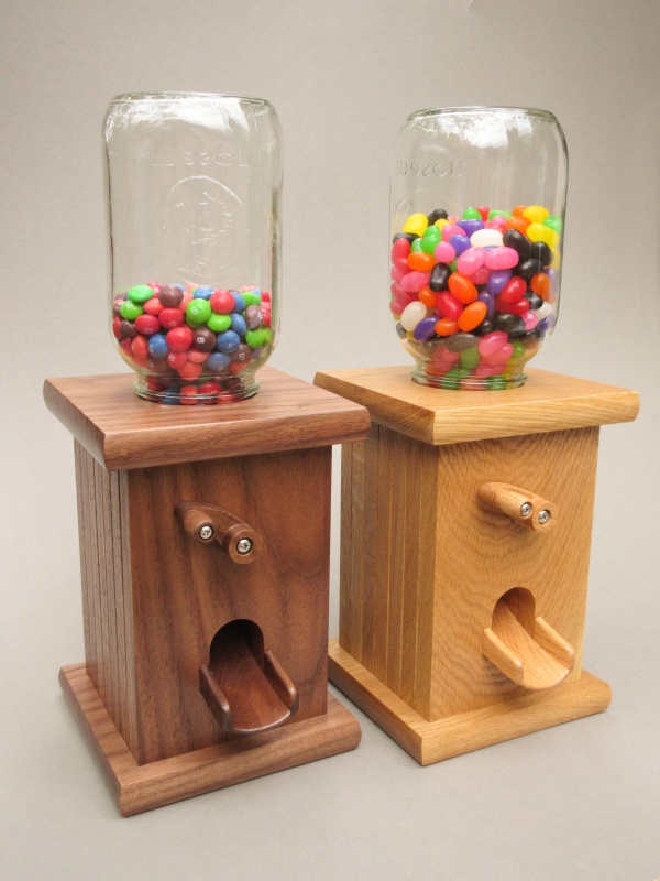 An acquaintance of mine had requested a wooden candy dispenser and I was happy to put one together for her. Not being a huge candy consumer I wasn't even aware that they were a thing, other than those metal-and-glass items of fascination for children found in grocery stores and malls back in the day ("Can I have a nickel Mom?"). Of course these days it takes nothing more than a bit of on-line searching to familiarize one's self with even obscure candy dispensers (yes, the World Wide Web is the best thing since sliced bread. And really if the choice was WWW or slicing my own bread, I'd get out the serrated knife in an instant). But I digress.